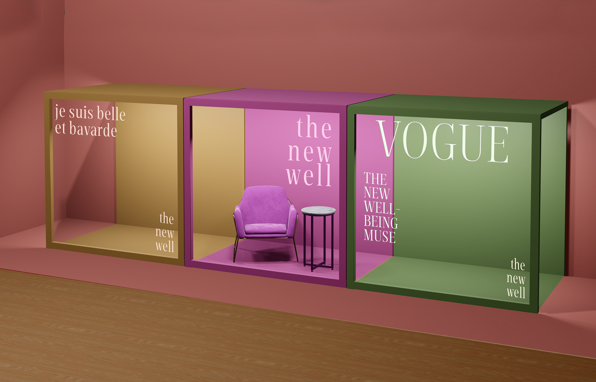 Conception de la scénographie intégrale d'un nouveau salon de bien-être au Carreau du Temple à Paris.